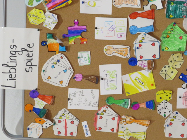 So lautet seit einigen Tagen in der AHS das neue Monatsmotto. In den Klassen werden Gesellschaftsspiele gespielt und die Schülerinnen und Schüler haben die Möglichkeit Spiele für Ihre Klasse auszuleihen und Spiele klassenweise zu tauschen. Inzwischen haben einige Klassen eine feste Spielezeit etabliert und die Kinder sind mit viel Freude dabei, miteinander „UNO“, „Mensch ärgere Dich nicht“ und Co. zu zocken. Bei der Malaktion im Foyer während der Pausenzeiten haben die Kinder aufgemalt und geschrieben, was für (digitale und analoge) Lieblingsspiele sie haben. Die Aktion wird noch weitergehen: auf die Kinder wartet ein AHS- Bilderrätsel (mit Fotografien eines Sechstklässlers) und wir werden Hüpfspiele auf dem Pausenhof machen.