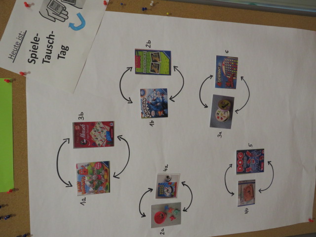 So lautet seit einigen Tagen in der AHS das neue Monatsmotto. In den Klassen werden Gesellschaftsspiele gespielt und die Schülerinnen und Schüler haben die Möglichkeit Spiele für Ihre Klasse auszuleihen und Spiele klassenweise zu tauschen. Inzwischen haben einige Klassen eine feste Spielezeit etabliert und die Kinder sind mit viel Freude dabei, miteinander „UNO“, „Mensch ärgere Dich nicht“ und Co. zu zocken. Bei der Malaktion im Foyer während der Pausenzeiten haben die Kinder aufgemalt und geschrieben, was für (digitale und analoge) Lieblingsspiele sie haben. Die Aktion wird noch weitergehen: auf die Kinder wartet ein AHS- Bilderrätsel (mit Fotografien eines Sechstklässlers) und wir werden Hüpfspiele auf dem Pausenhof machen.